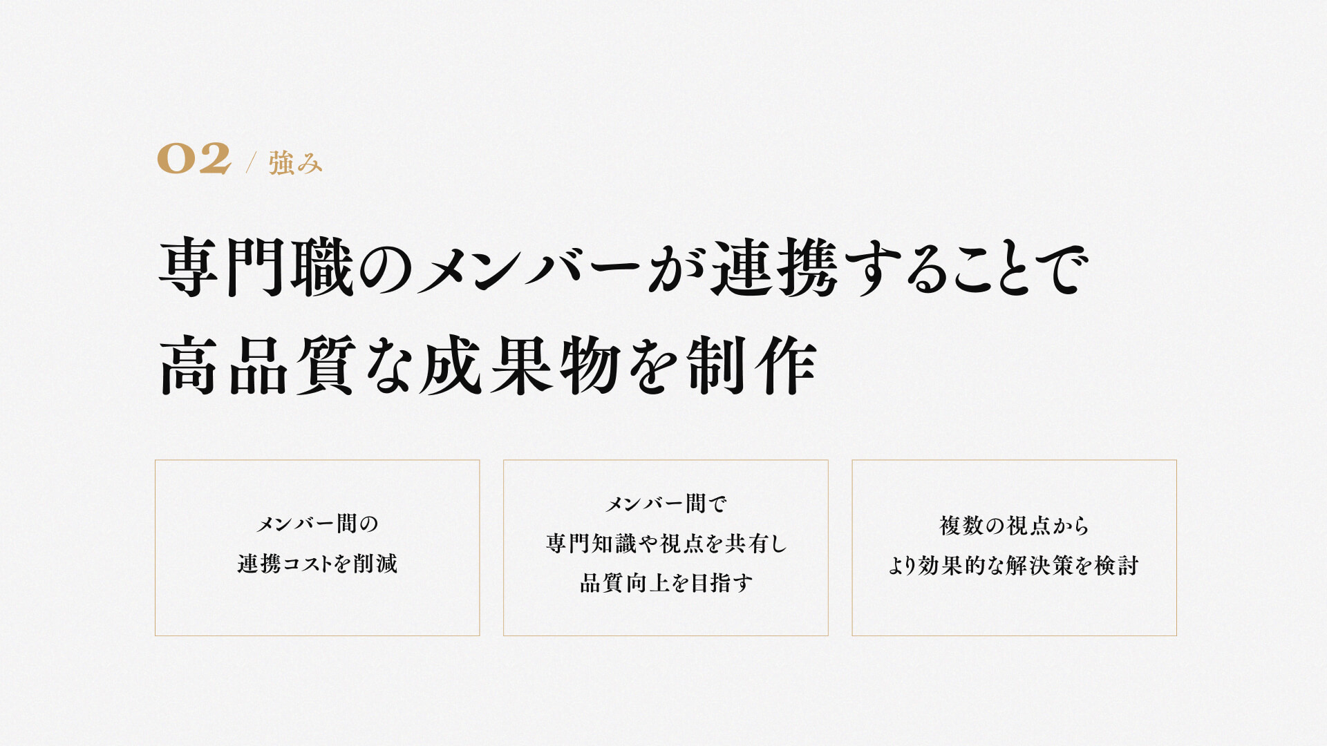 専門的な知識をもつメンバーが連携してプロジェクトを進行するため、高品質な成果物を制作できます。