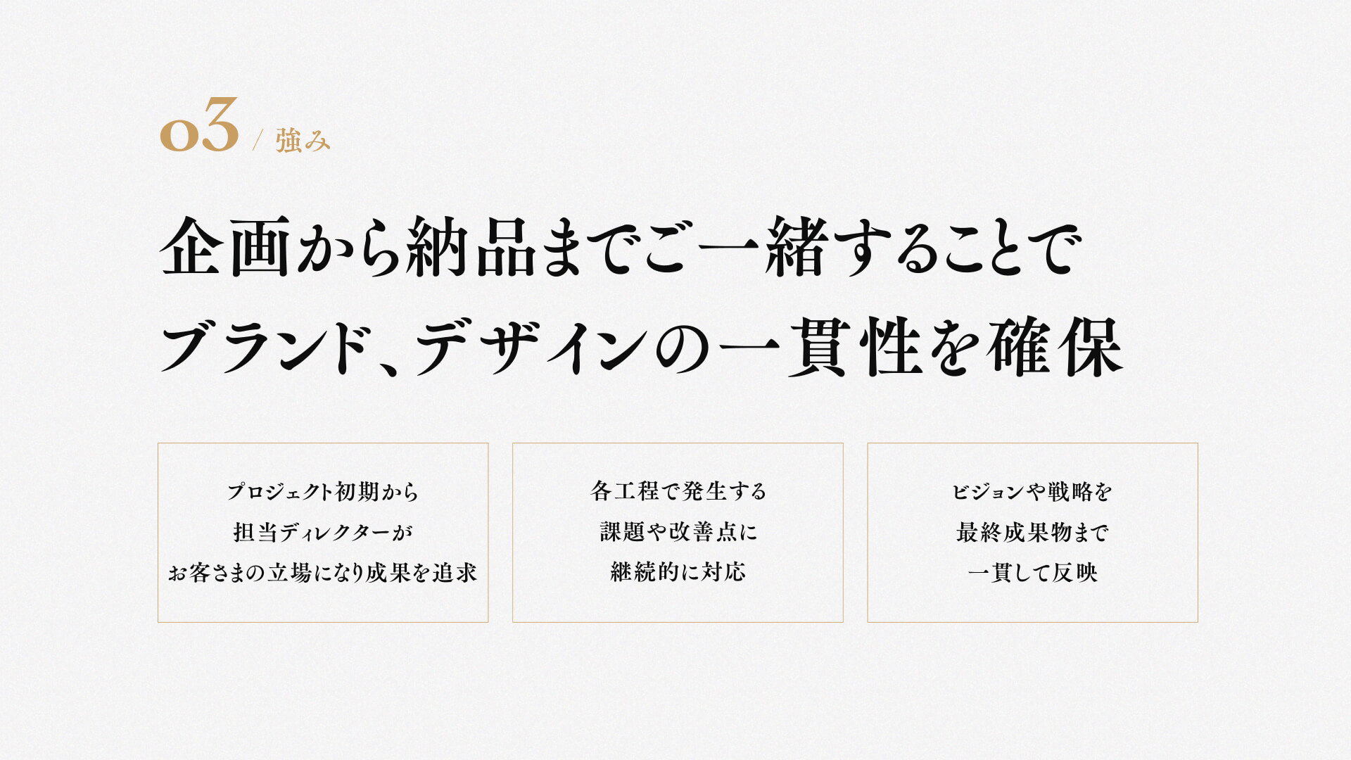 プロジェクトの全工程を把握したディレクターが企画から納品まで参加・監修するため、ブランド・デザインの一貫性を確保できます。