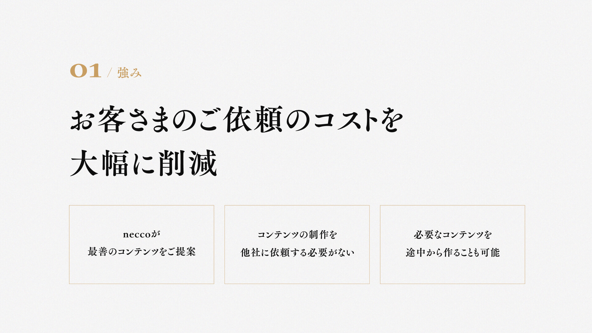 企画・設計から言葉づくり、デザイン、実装まで一貫して社内で完結できるため、お客さまのご依頼のコストを大幅に削減できます。